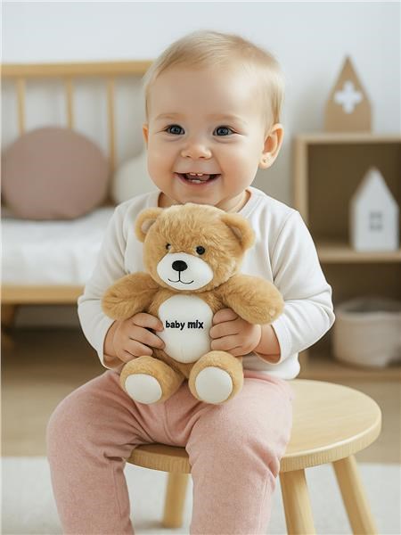 Baby Mix plüss maci – magasság 23 cm × hosszúság 20 cm × szélesség 10 cm