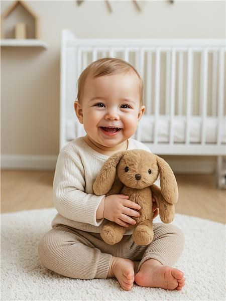 A nyuszi mérete 25 × 20 × 8 cm, puha, kellemes tapintású és biztonságos anyagból készült – így tökéletes öleléshez és játékhoz. A takaró melegen átöleli a babát, a cipőcskék pedig óvják apró lábacskáit, kényelmet és komfortot biztosítva.