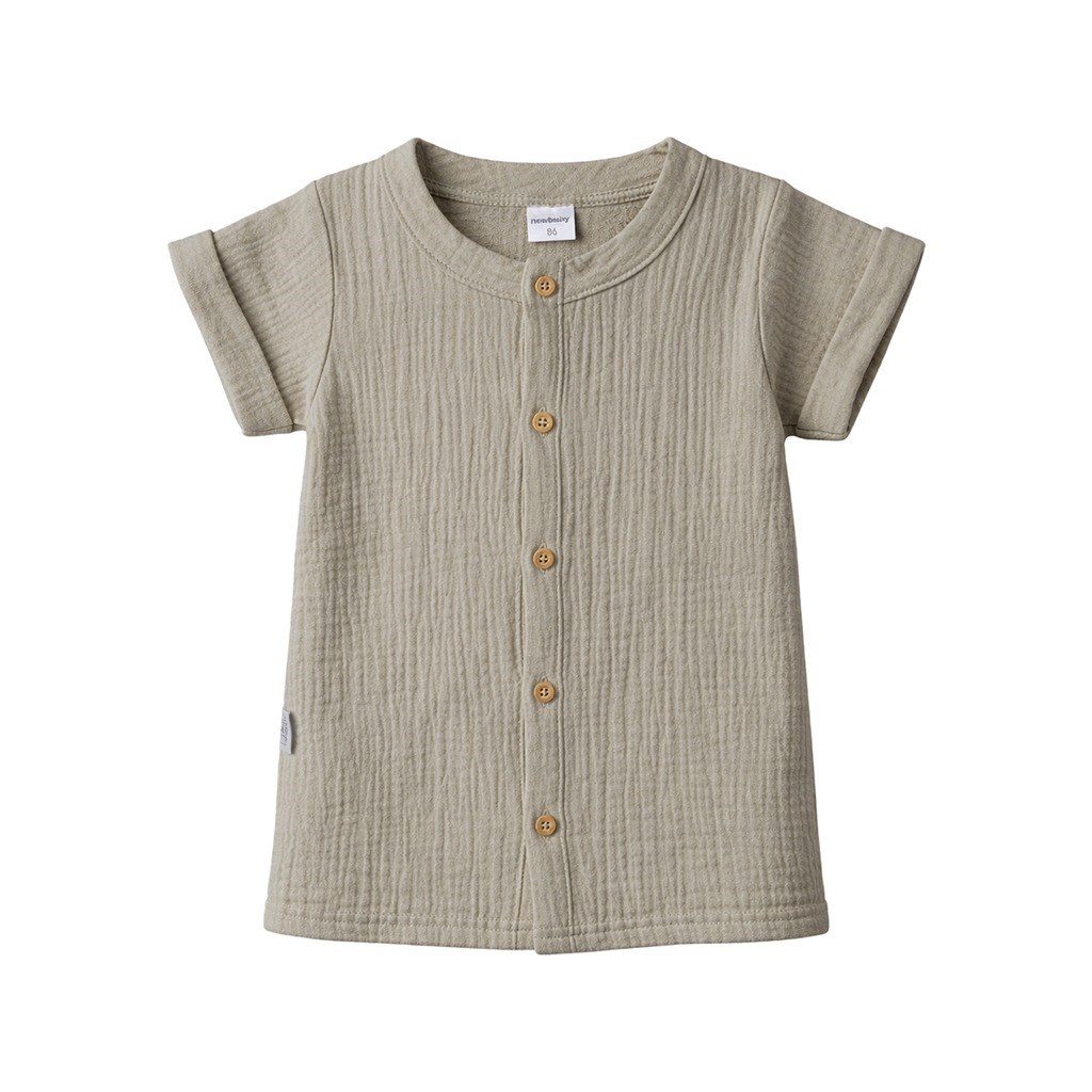 Stílusos 2 részes muszlin baba együttes a cseh New Baby. Az együttes inget és rövidnadrágot tartalmaz. Gombos záródású, rövid ujjú ing. Trendi rövidnadrág derékban