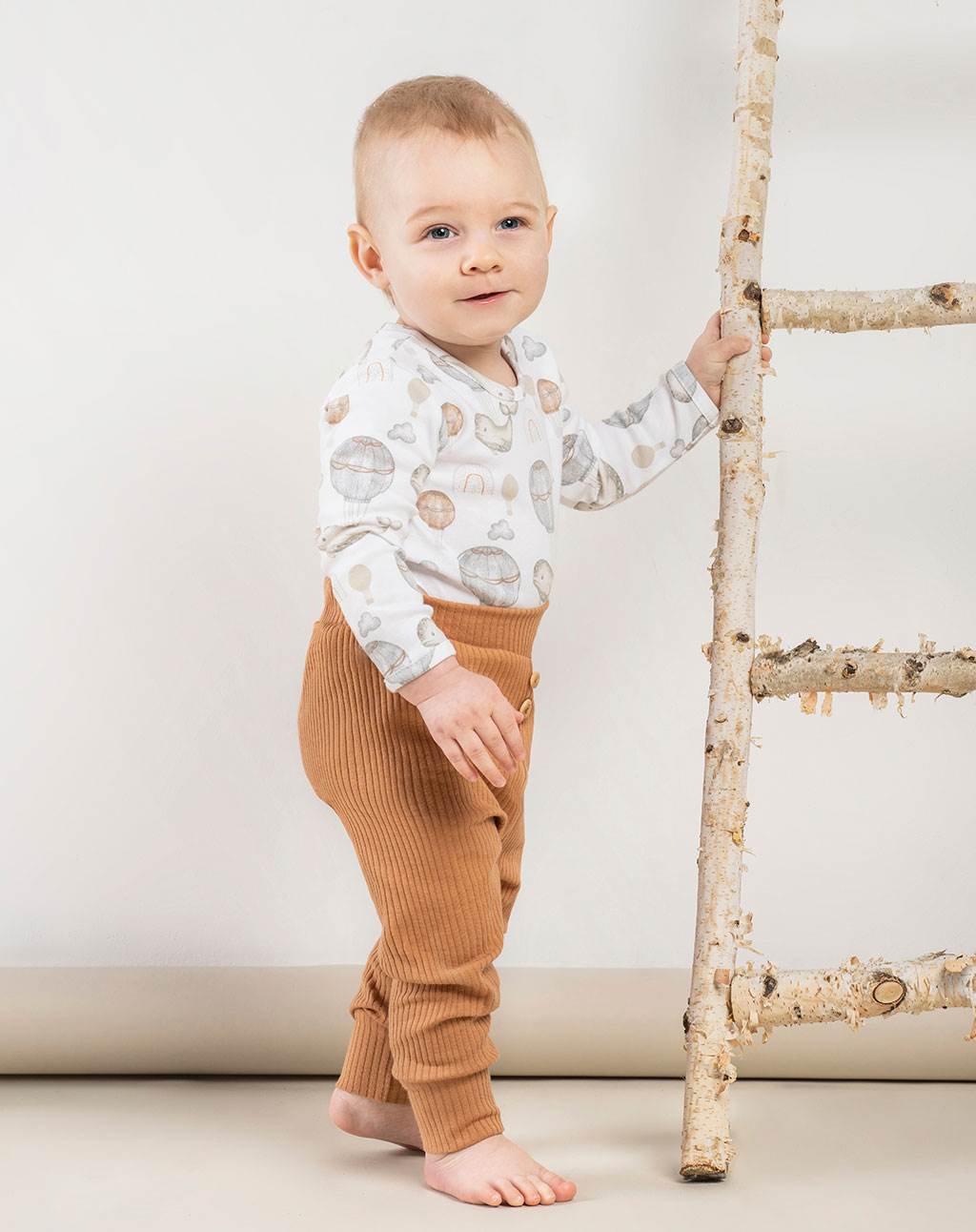 Varázslatos baba pamut szabadidő nadrág Nicol Miki. Széles rugalmas derékpánttal rendelkezik, amely nem fogja nyomni a baba hasát. Nagyon kellemes és kiváló minőségű anyagból készült, amely ideális a kisbabák számára. Anyaga: 100% pamut.