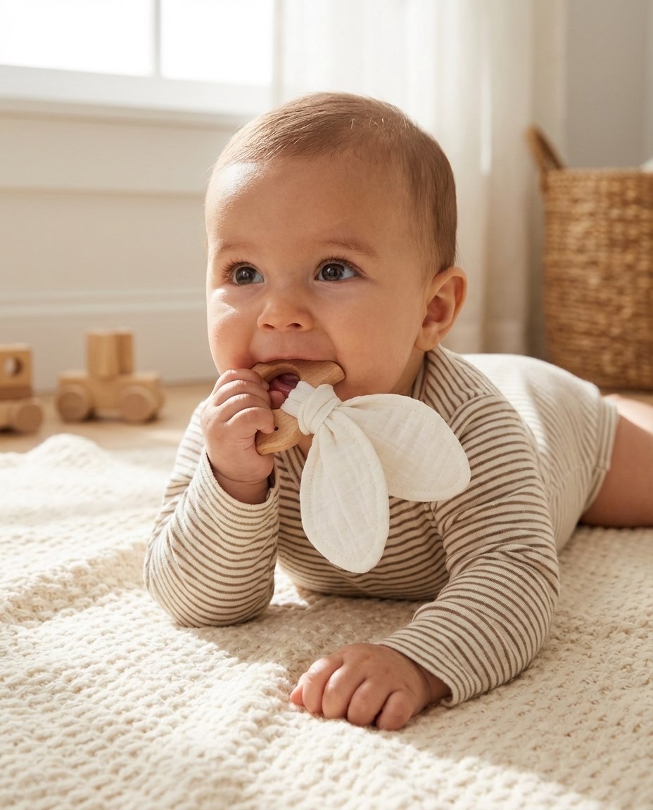 A muszlinpelenkás rágóka ideális készlet, ha a baba fogzik. A rágóka középpontbarát bükkfából és puha muszlinszövetből készült. Teljesen biztonságos a babák számára, nyugtató megkönnyebbülést hoz a fogzás alatt. A rágóka játékként is használható a babák számára. A rágóka tökéletesen illeszkedik a többi muszlin termékünkhöz, így egy gyönyörű készletet alkot, amelyet babaköszöntőre ajándékozhat.