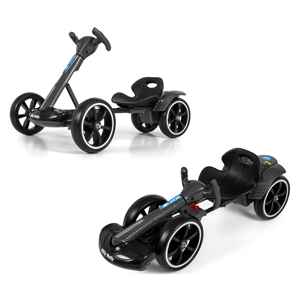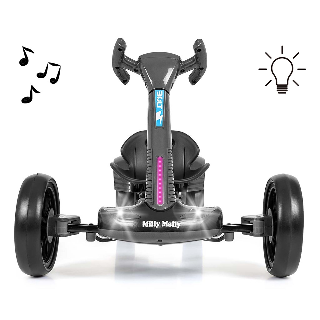 Ajándékozz gyermekednek valódi vezetési élményt. A BOLT Milly Mally elektromos gokart egy modern akkumulátoros gokart 3 éves kortól, amely ötvözi a sportos dizájnt, a biztonságot és a rengeteg szórakozást. A két motornak, a LED világításnak és a távirányítónak köszönhetően a vezetést a gyerekek és a szülők is élvezhetik – otthon és a szabadban is.
