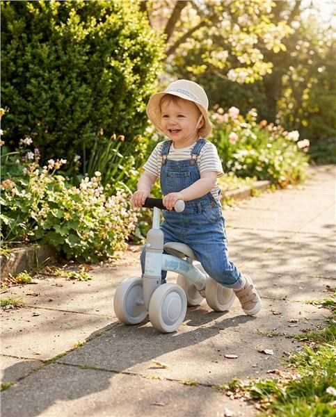 A Baby Bike gyerek futóbicikli a legapróbb versenyzők számára készült. A váz különleges kialakításának és rendkívül kis tömegének köszönhetően a Baby Bike 1 éves kortól alkalmas. Abban az időszakban a legalkalmasabb, amikor a kicsi az egyensúlytartást és a mozgáskoordinálást tanulja. A legjobb alternatívája az oldalkerekes biciklinek, később sokkal könnyebben megy majd a „normál” kerékpár használata. A járgány a dupla kerekeknek és a szilárd acél váznak köszönhetően stabil és biztonságos. A bájos ábrával díszített, ergonomikus kialakítású habülés kellemesen puha. A Baby Bike kormányzárral is rendelkezik, így nem kell tartanunk az esetleges leeséstől, ha a kis sportoló manőverezésbe kezd. A dupla habkerekek kiválóan elnyelik a felületi egyenetlenségeket, és tökéletes tapadást biztosítanak bármilyen felületen. A stabil és rendkívül könnyű fémváz egészségre ártalmatlan festékkel porszórással kezelt felülete hosszabb élettartamot és karcállóságot biztosít.