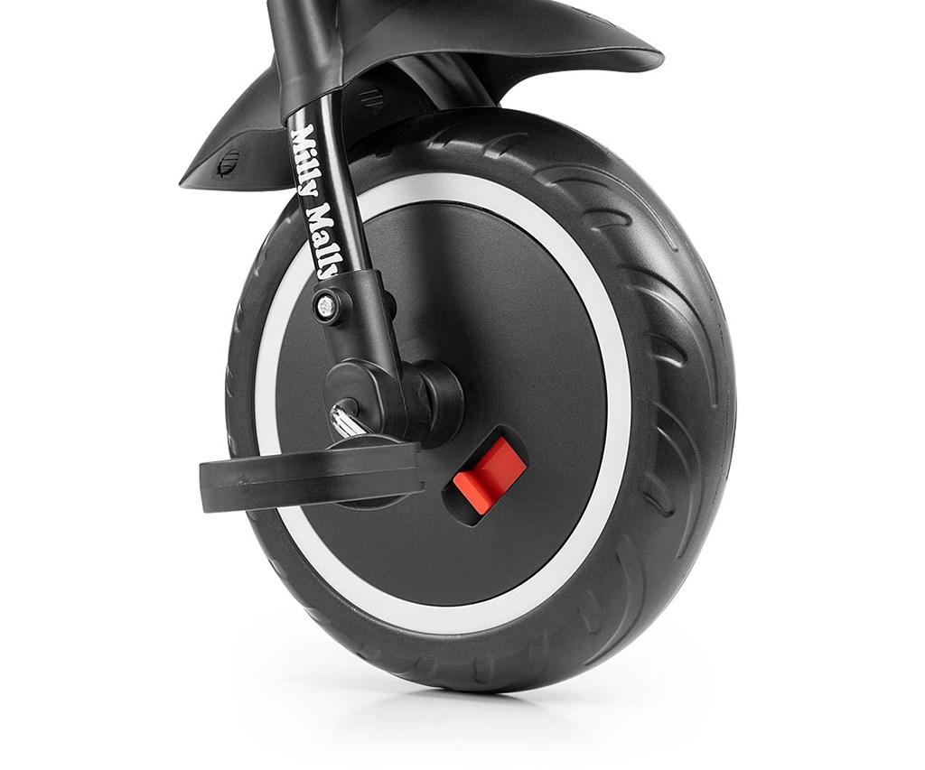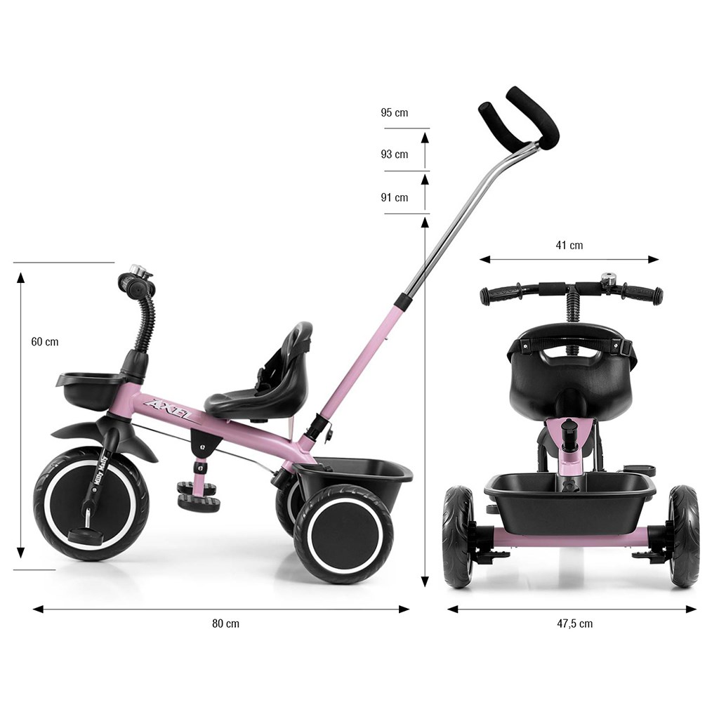 Gyerek pedálos, háromkerekű bicikli Milly Mally Axel. 1-3 éves gyermekek számára gyártott. Minőségi és tartós anyagokból készül. Kényelmes és ergonómikusan kialakított üléssel rendelkezik, amelynek távolsága a kormánytól könnyen beállítható, így a tricikli a gyermek korához és magasságához igazodik. A tricikli a GROW UP csoport termékei közé tartozik, tehát gyermekével növekszik. Az első keréknél kioldható a pedálhajtás, és a vezetőkar segítségével lehet a triciklit vezetni. Keményített EVA habból készült széles kerekek garantálják a kényelmet és a tartósságot bármilyen felületen. A maximális gyermekbiztonság érdekében a tricikli hárompontos biztonsági övvel rendelkezik.