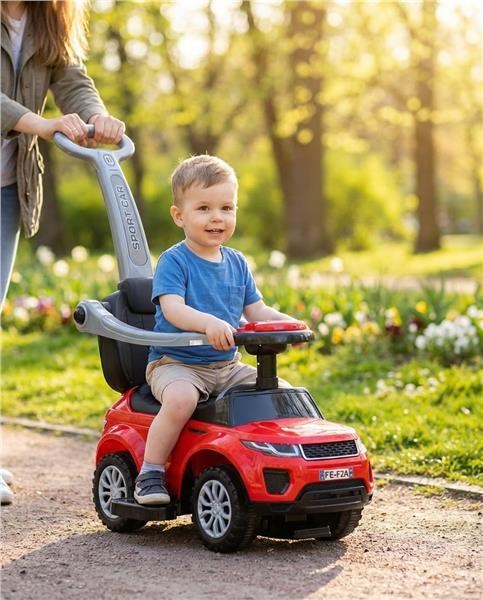 Baby Mix 3 az 1-ben vidám színes zenélő bébitaxi, minőségi műanyagból gyártott. Az elem nem a csomagolás része. Jellemzői: 12-36 hónapos gyerekek számára ajánlott, használható mint jármű, járóka vagy mint futóbicikli, leszerelhető tolókarral felszerelt, az ülés alatt tároló található a játékoknak, kürttel rendelkezik, a kormányon 4 gomb található, amelyek dallamot játszanak (2x1,5V AA elem), levehető oldalsó biztonsági védők, alsó lábtámasz, stabil és minőségi műanyag. Mérete: magassága - 86 cm ( teljes jármű kormánnyal), szélessége - 42 cm, hossza - 66 cm (a jármű hossza a kormánnyal).
