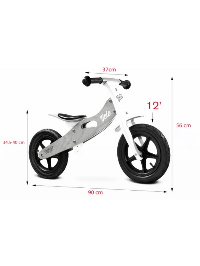 Gyermek lábbal hajtós bicikli Toyz Zap. Leírás: állítható ülésmagasság 34,5-40 cm; tömör faszerkezet; puha, kényelmes ülés; felfújható gumi, átmérő 12'';a kerék szélessége cca 4 cm, 3-6 éves kortól ajánlott; max 30 kg. Méretek: hosszúság: cca 90 cm, szélesség: cca 37 cm, magasság: cca 56 cm. Súly: cca 3,6 kg.