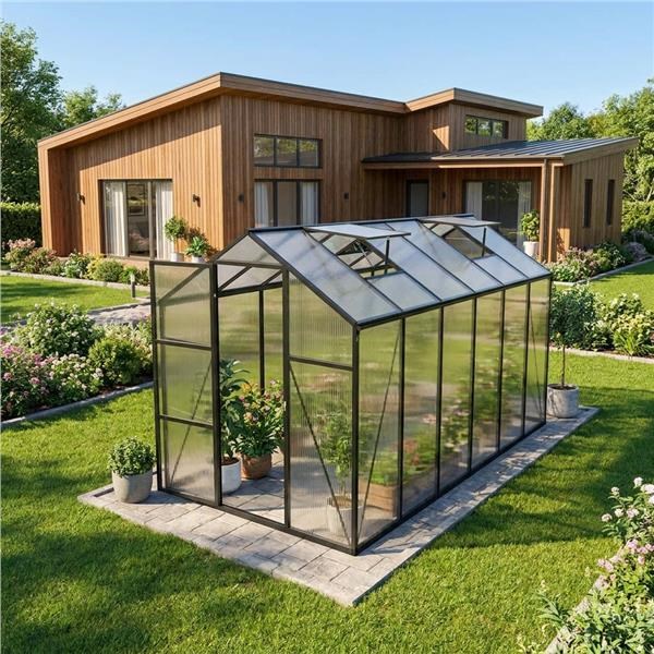A praktikus és strapabíró polikarbonát kerti üvegház ideális választás mindenkinek, aki meg akarja hosszabbítani a termesztési szezont, és optimális növekedési feltételeket szeretne biztosítani a növényeknek. A robusztus alumínium szerkezetnek, a megerősített paneleknek és a kifinomult szellőzőrendszernek köszönhetően az üvegház egész évben megbízhatóan használható.