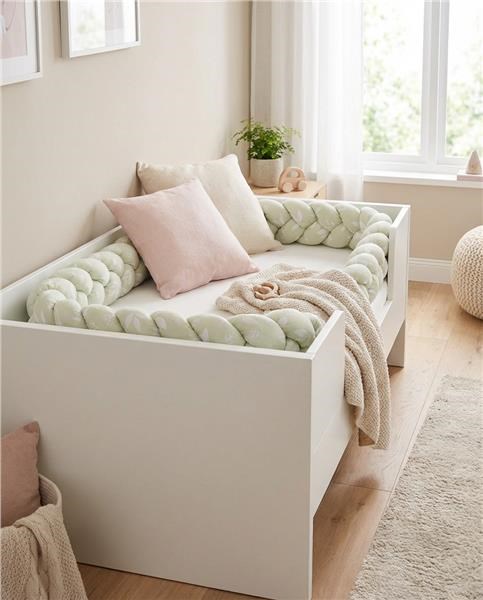 Pihe puha praktikus fonott rácsvédő kiságyba New Baby. A fonott copf a legdivatosabb és legszuperebb babaszoba kiegészítő. Minden darab egyedileg készül, a legjobb minőségű pamut és minky anyagokból, és antiallergén szállal vannak töltve. A rácsvédő kézzel fonott. Kiságyban, bölcsőben használható, ahol megvédi a gyermeket az esetleges, forgolódásból származó sérülések kialakulásától. A copf felhasználható babafészekként, vagy dekorációként a szobába, esetleg mint egy szigetelés a fal hidegétől. Minden végén szalag található, hogy a copfot a kiságyhoz lehessen rögzíteni. A rögzítéssel biztosítja gyermekének a biztonságos és egészséges alvást.