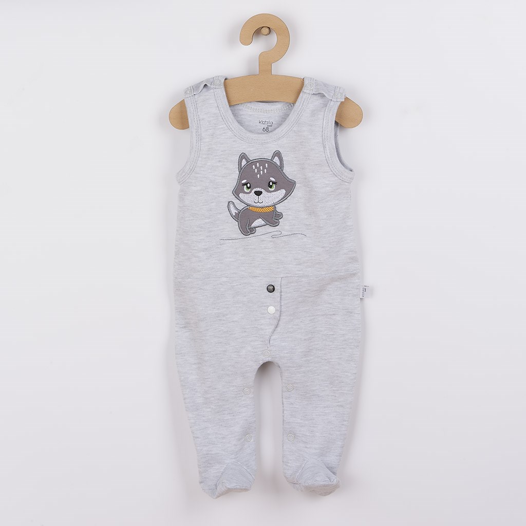 Baba 3-részes együttes Koala Doggy. Az együttes kabátkát, rugdalózót és sapkát tartalmaz. A rugdalózó aranyos kiskutya képpel díszítve. Vállnál és az ülepénél patentos. A kabátka teljes hosszában patentos. A sapka aranyos kiskutya képpel díszítve, és rugalmas szegéllyel rendelkezik. Alakjának köszönhetően a fülek is védve maradnak. Nagyon kellemes és puha anyagból készült. Kislányok és kisfiúk számára is alkalmas. Anyaga: 100% pamut.