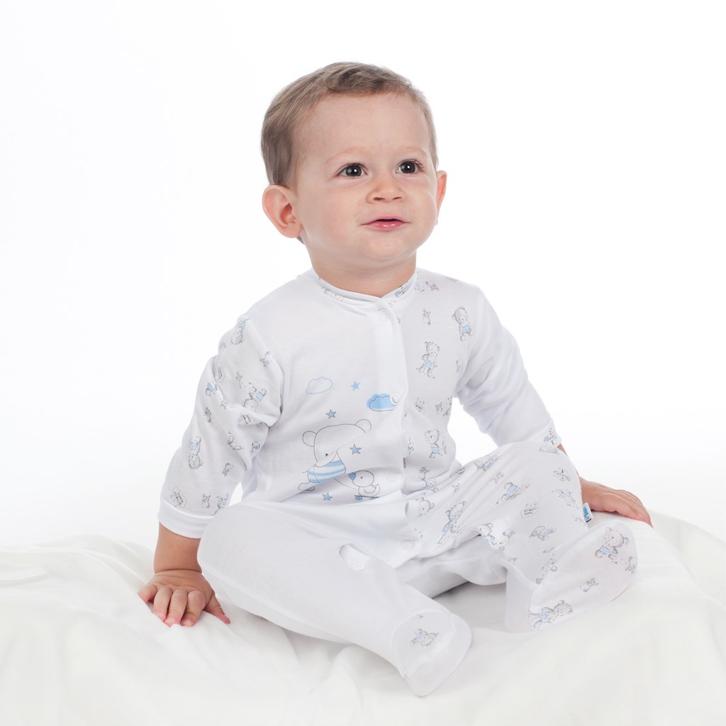 Baba hosszú ujjú body New Baby Bears. A body ujja macis mintával rendelkezik és az első része aranyos macival és felirattal díszítve. Vállnál és az ülepénél patentos. Anyaga: 100% pamut.