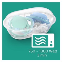 - A sterilizáló/szállító doboz lehetővé teszi, hogy a cumit a mikrohullámú sütőben sterilizálja és magával vigye