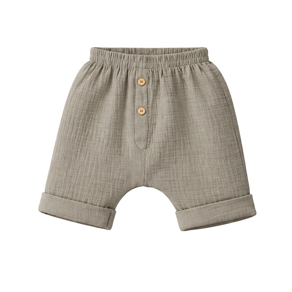 Stílusos 2 részes muszlin baba együttes a cseh New Baby. Az együttes inget és rövidnadrágot tartalmaz. Gombos záródású, rövid ujjú ing. Trendi rövidnadrág derékban