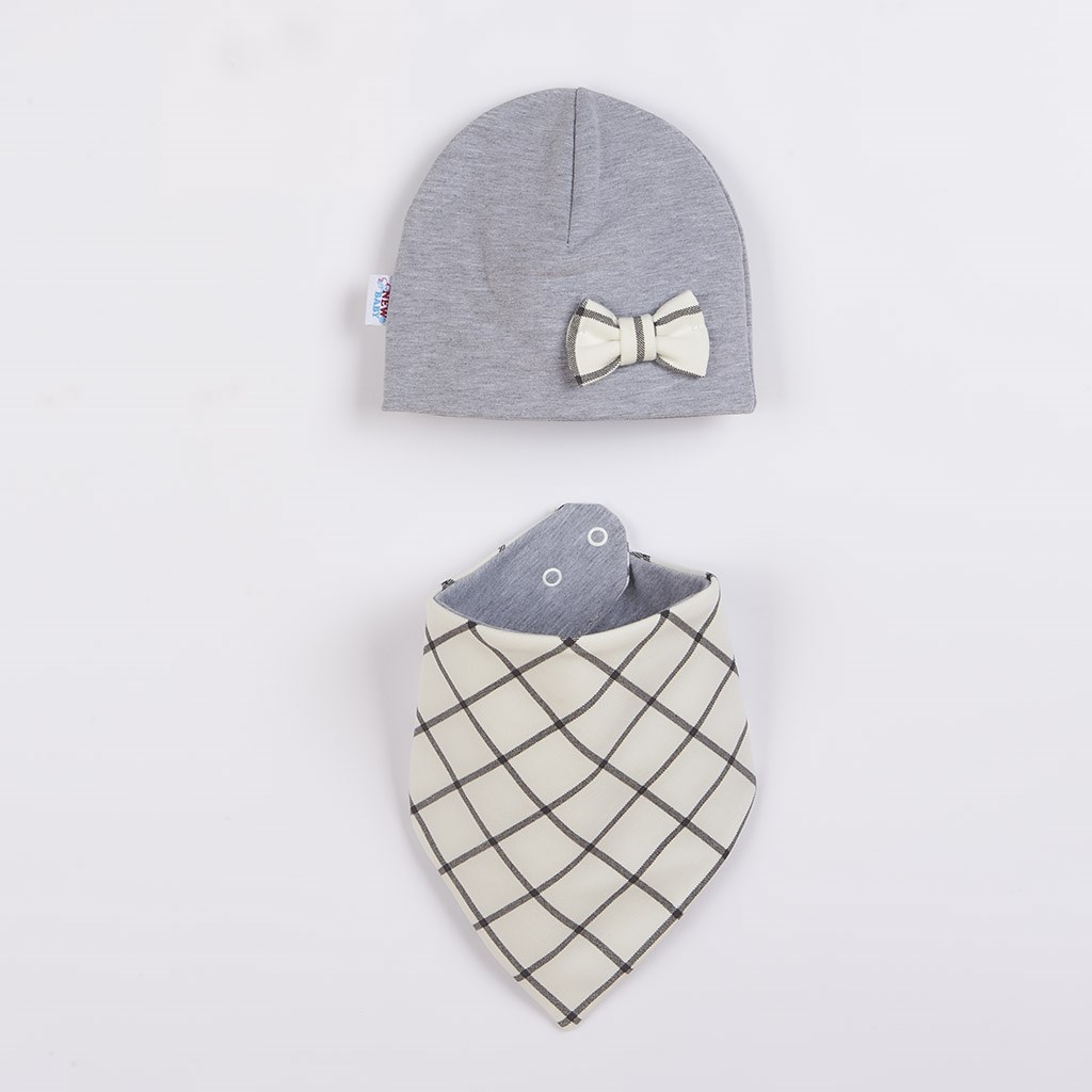 Praktikus baba 2 részes szett New Baby Missy. A szett sapkát és nyakbavaló sálat tartalmaz. A sapka aranyos masnival díszítve. Alakjának köszönhetően a fülek is védve maradnak. A nyak sál kétoldalas, az egyik oldala egyszínű és a másik oldala mintás. Egyszerű bekapcsolás patentokkal. Remek darab, amely gyönyörű kiegészítőként vagy praktikus ruhadarabként használható és a baba nyakát melegen tartja. Nagyon kellemes és puha anyagból készült. Anyaga: 95% pamut, 5% elasztán.