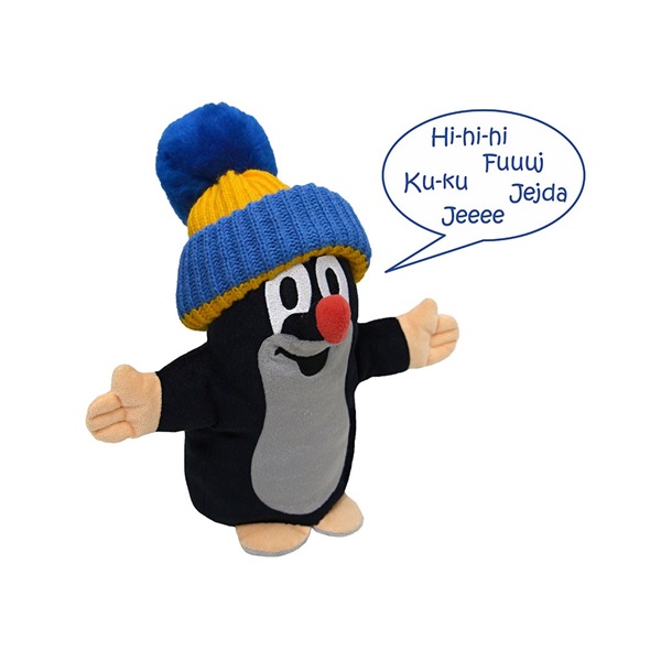 Beszélő Kisvakond kézbáb 25 cm, kék-sárga sapkában