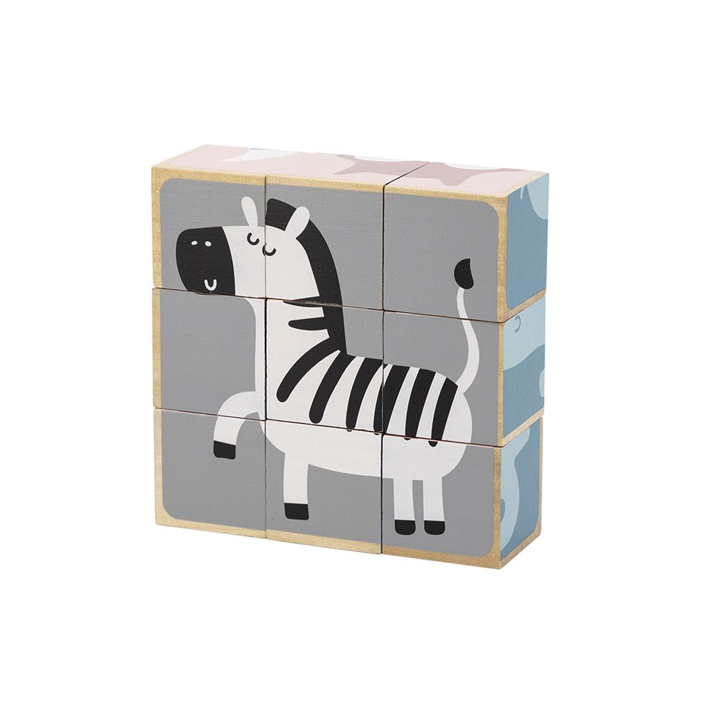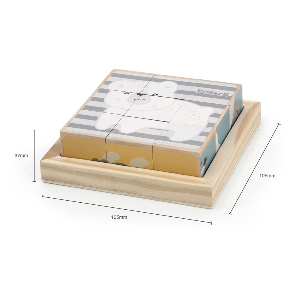 Fejlessze gyermeke készségeit egy klasszikus fából készült blokkjátékkal. A 9 blokkból gyermeke 6 képet hoz létre a fa alapon.
