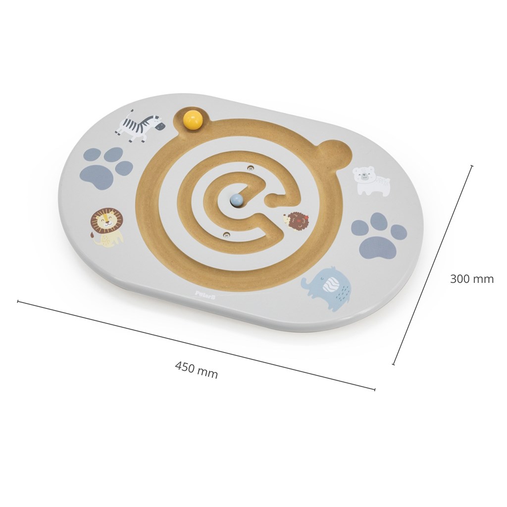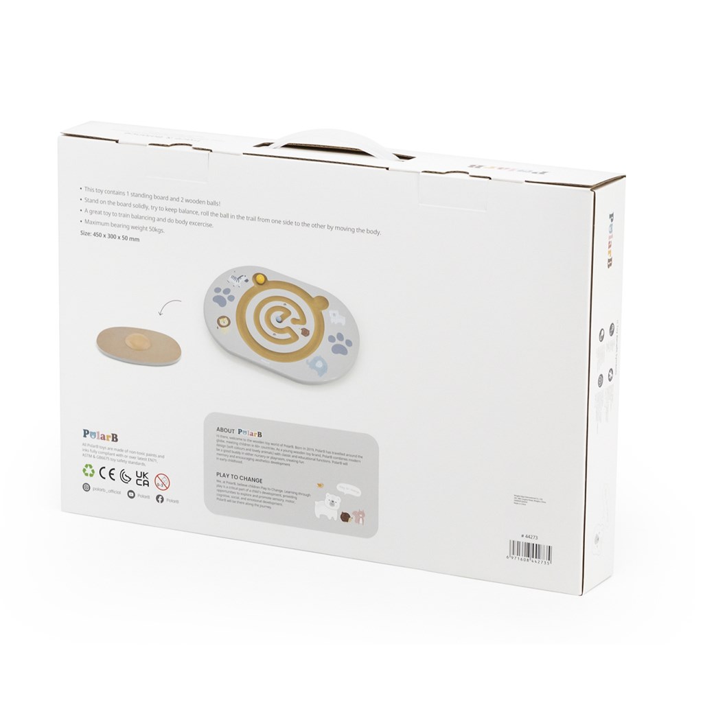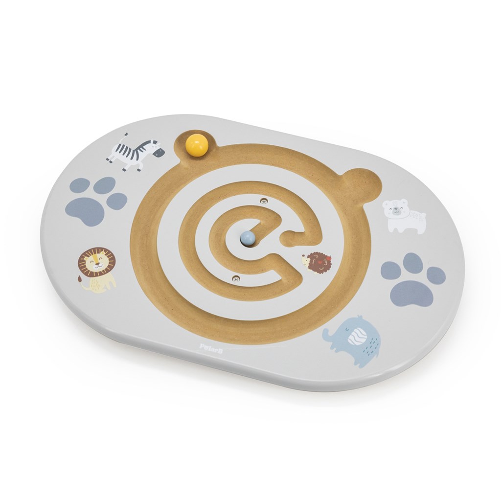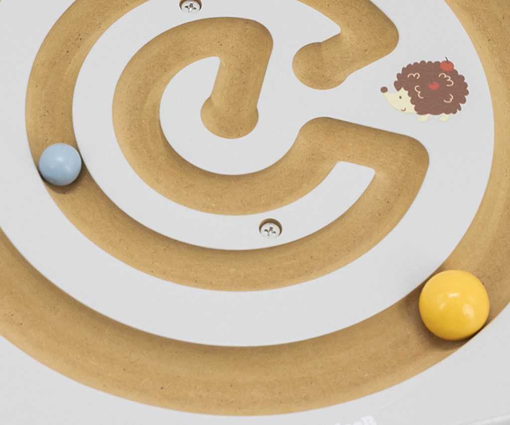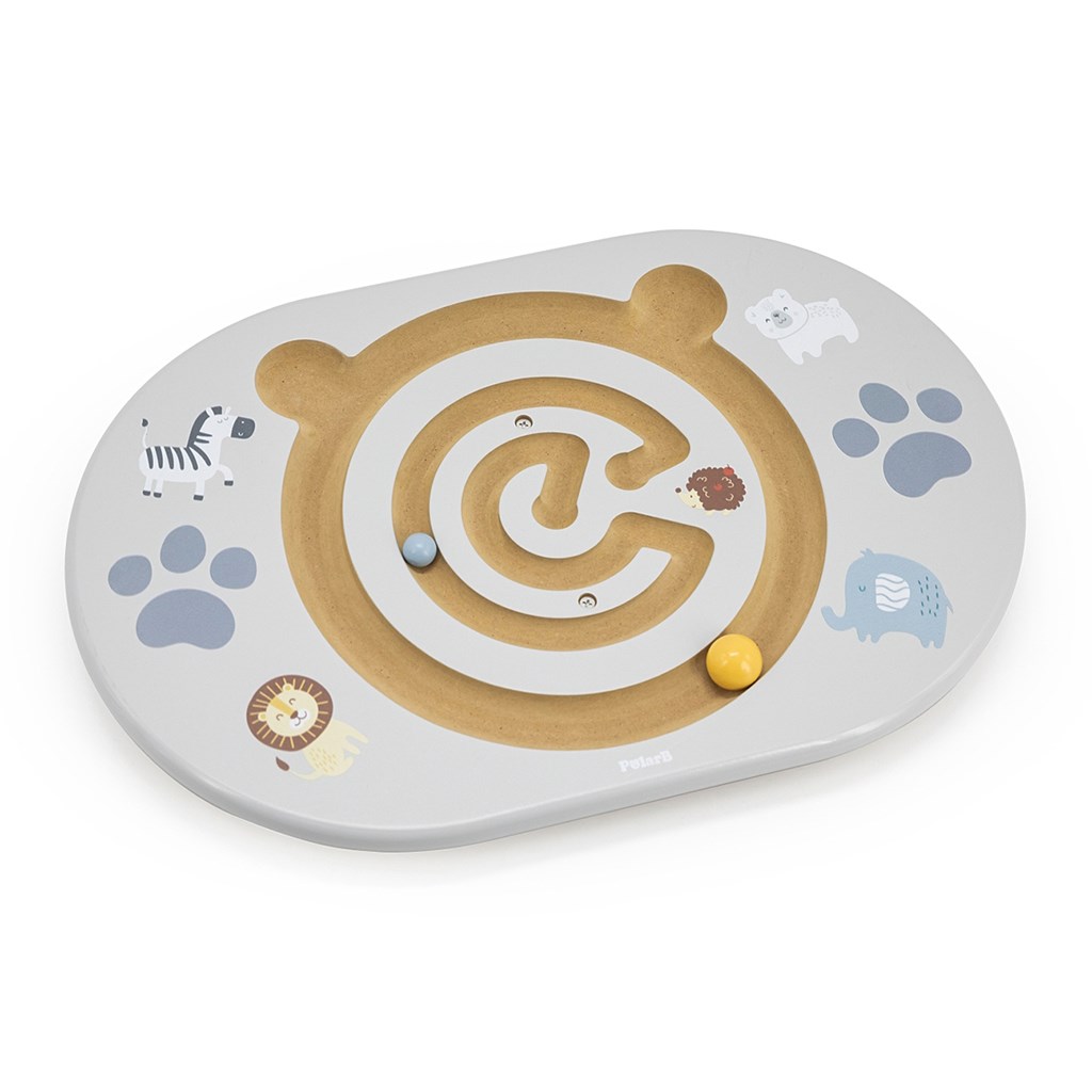 Egyensúlyozó labirintus egy kiváló játék 4 év feletti gyermekek számára, amely segíti az egyensúlyérzék, a mozgáskoordináció és a koncentráció fejlődését. A szett egy egyensúlyozó deszkát tartalmaz, amelyen egy maci alakú vájat és két fa golyó található. A gyermek feladata, hogy az egyensúlyozás során a golyót végigvezesse a labirintuson – ez remek módja a testkontroll gyakorlásának.