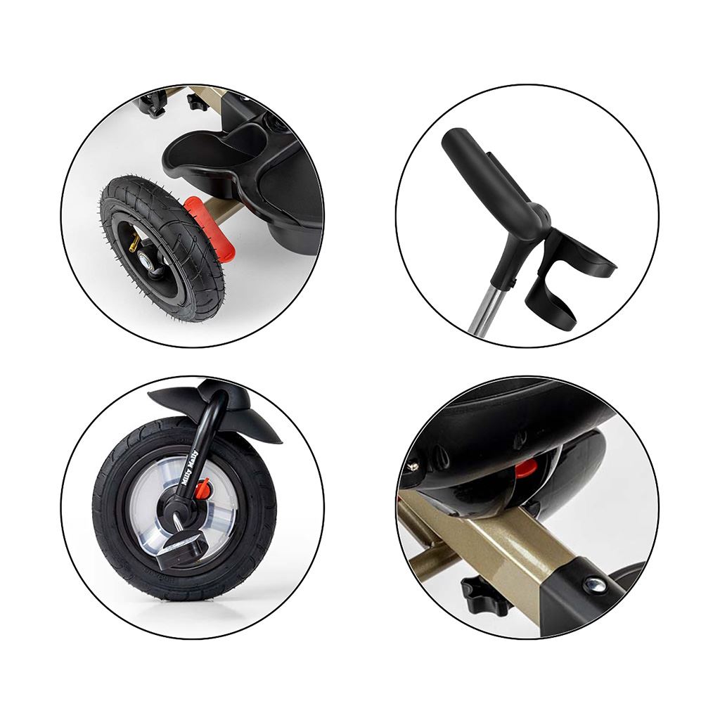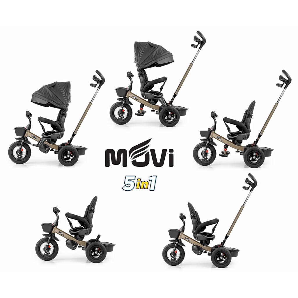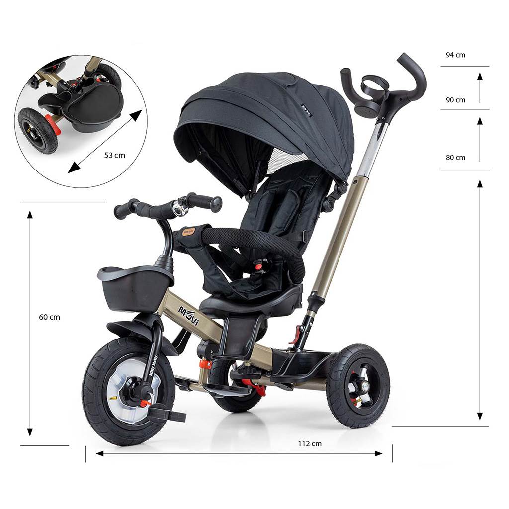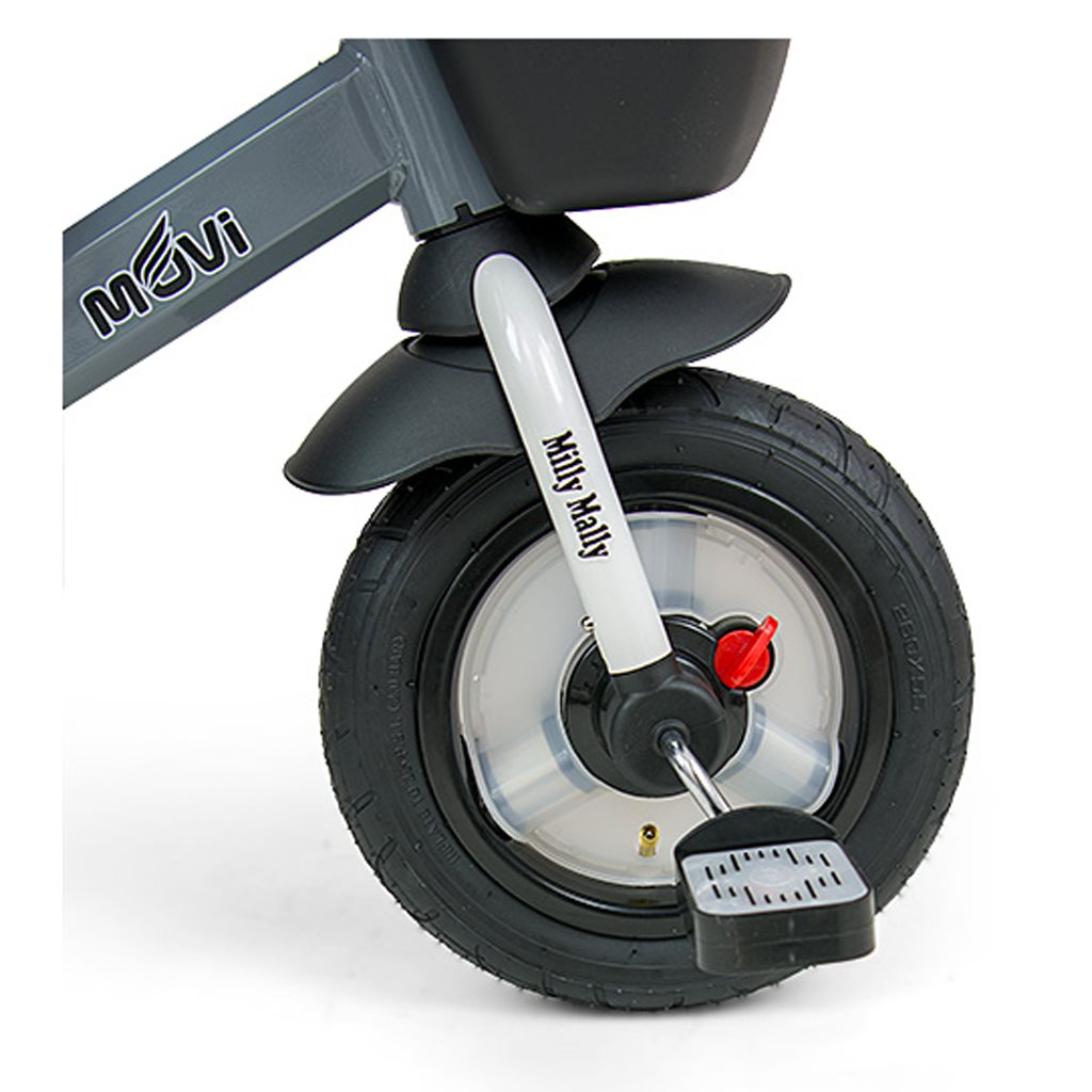Baba pedálos tricikli Milly Mally Movi a GROW UP termékek tipikus példája - gyermekével együtt nő. Ideális sétákhoz és nagyszerű szórakozást nyújt a gyerekek számára. Kiváló minőségű és tartós anyagokból készül. Kényelmes és ergonómikusan kialakított üléssel rendelkezik, amely 360 fokkal elforgatható, menetiránnyal szemben és ellentétes pozícióba is használható. Kényelmet és biztonságot nyújt a hárompontos biztonsági öv, kényelmes lábtámasz és a nagy felfújható kerekek. A vezetőrúd és a tető leszerelése után, háromkerekű biciklinek használható.