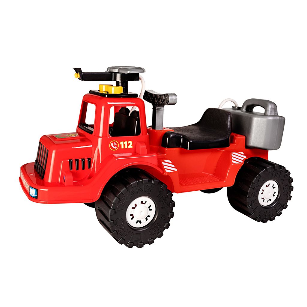 A Bayo tűzoltóautó kabinján kézzel forgatható vízágyú van, melyhez víztartály csatlakozik. Miután feltölti vízzel, kis tűzoltója szivattyúzhatja azt és olthatja a "tüzet" otthon vagy a kertben. Az ülés alatt tárolóhely van. nem kormányozható. Nyissuk meg a gyermekek fantáziavilágát, és segítsük őket motoros képességeik fejlesztésében.