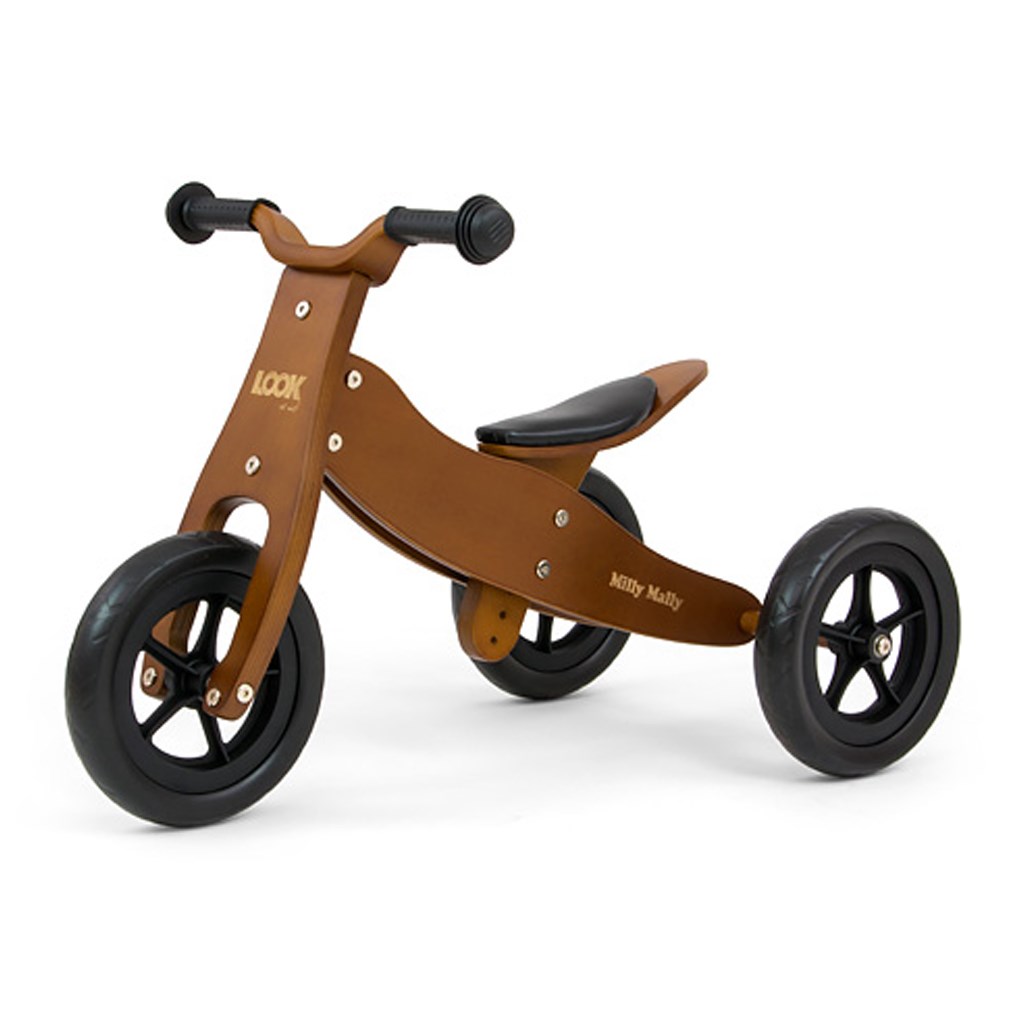 Gyerek multifunkciós fa futóbicikli Milly Mally Cool Dark Natural