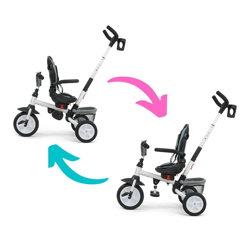 Gyerek pedálos, háromkerekű bicikli 6az1-ben Milly Mally Stanley. A tricikli a GROW UP csoport termékei közé tartozik, tehát gyermekével növekszik. Minőségi és tartós anyagokból készül. Kényelmes és ergonómikusan kialakított üléssel rendelkezik, amely 360 fokkal elforgatható, annak köszönhetően a tricikli menetirányba és ellentétes pozícióba is használható. Kartartóval, biztonsági övekkel, gumi kerekekkel és lábtámasszal felszerelt. A vezetőrúd és a tető eltávolítása után tricikliként használható.