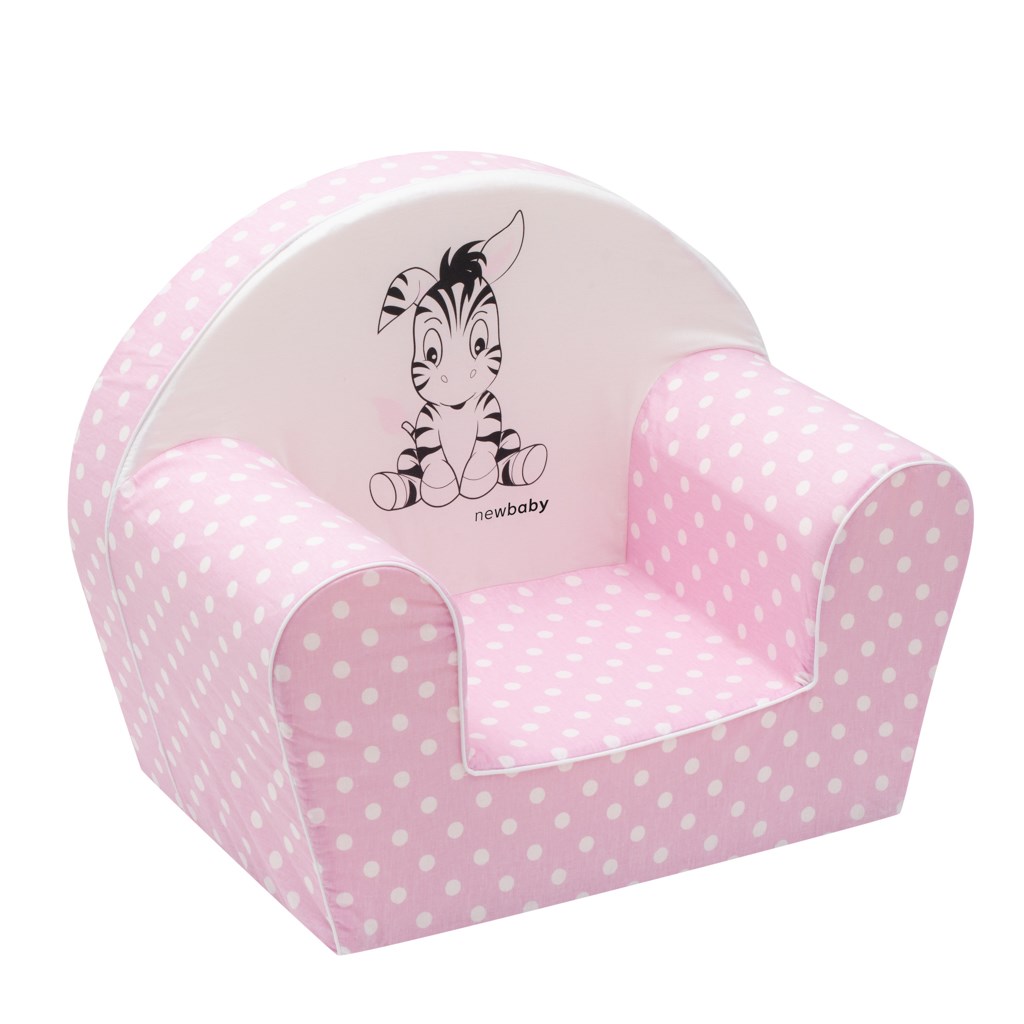 Gyermek fotel New Baby Zebra. A gyerekszobába alkalmas. Puha minőségi anyagból készült. Pamut bevonattal rendelkezik amely levehető és mosható. Szép színekbe, pöttyös és zebra képpel díszitve. Mérete 42x53 cm, háttámla magassága kb 29 cm, szélessége kb 25 cm. Anyaga: bevonat 100% pamut, belső anyaga poliuretán hab.