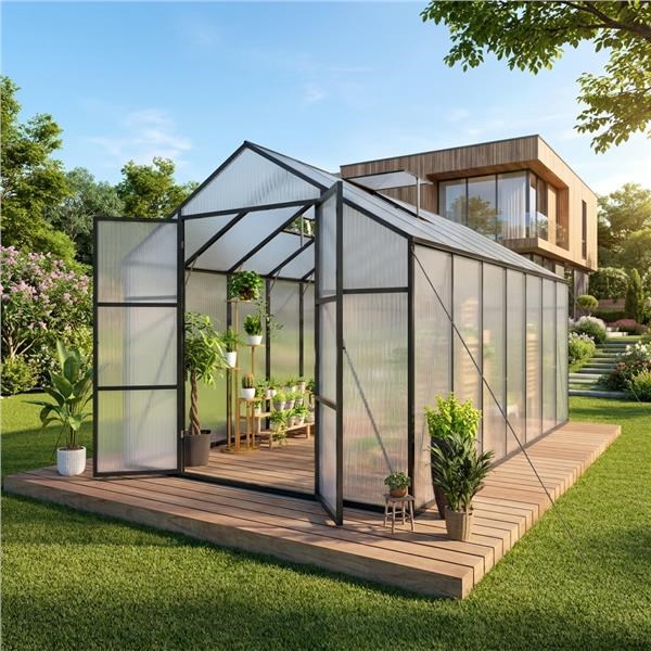 Hozzon létre saját termesztőterületet a kertjében, és biztosítson a növényeknek egész évben stabil körülményeket. Ez a tágas üvegház a szilárd alumínium váz és a kiváló minőségű polikarbonát panelek kombinációját kínálja, amelyek optimális fényáteresztést, UV-védelmet és kiváló hőszigetelést biztosítanak.