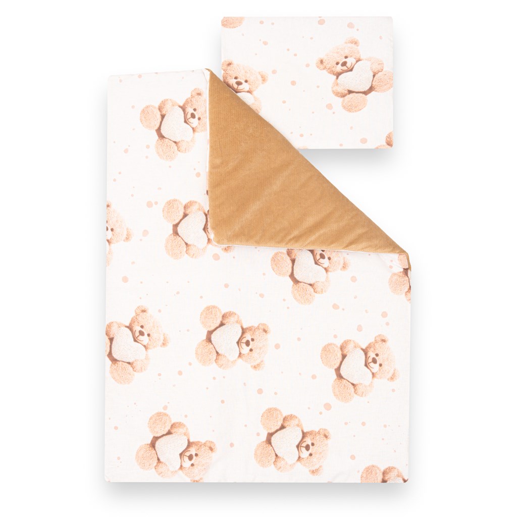 Kétoldalas együttes Velvet és pamut New Baby babakocsiba Love Teddy Bear beige