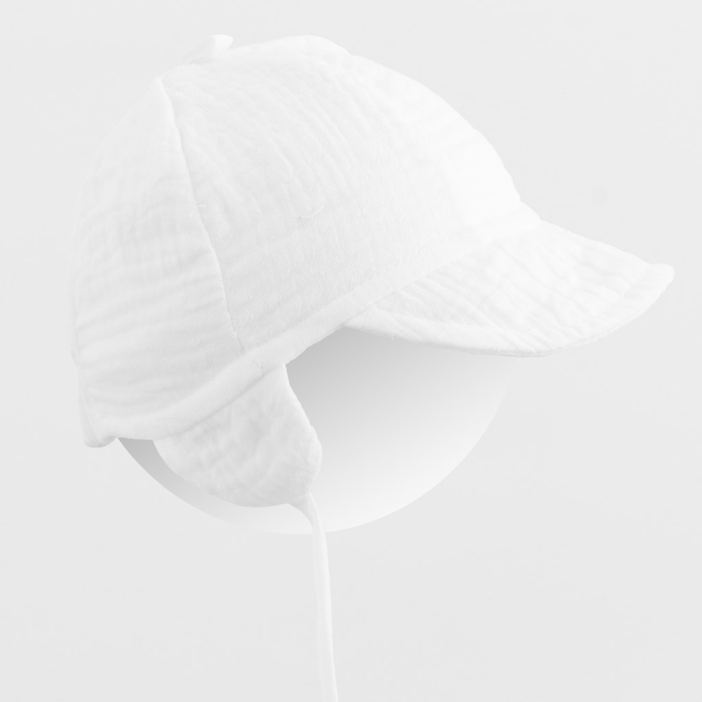 Nyári muszlin baba sapka napellenzővel New Baby fehér
