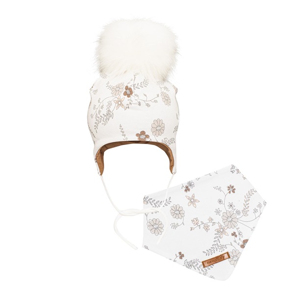2 részes őszi szett New Baby Special One. A szett sapkát és nyakba való kendőt tartalmaz. A béléses baba sapka fülrésze gyönyörűen formázott, kötős, jól tart a baba fején. Gyönyörű pompon díszíti, és az egész szett kellemes tapintású, virágmintás anyagból készült. A kendő 2 méretre állítható. Kiváló minőségű és rendkívül praktikus kiegészítő hűvös időbe. A New Baby számára nagyon fontos a vásárlók elégedettsége, és ezt a célt szolgálja a New Baby Special One kollekcióhoz tartozó szett is. Külső rész: 95% pamut, 5% elasztán. Bélés: 95% pamut, 5% elasztán. Téli és őszi viseletre alkalmas darab.