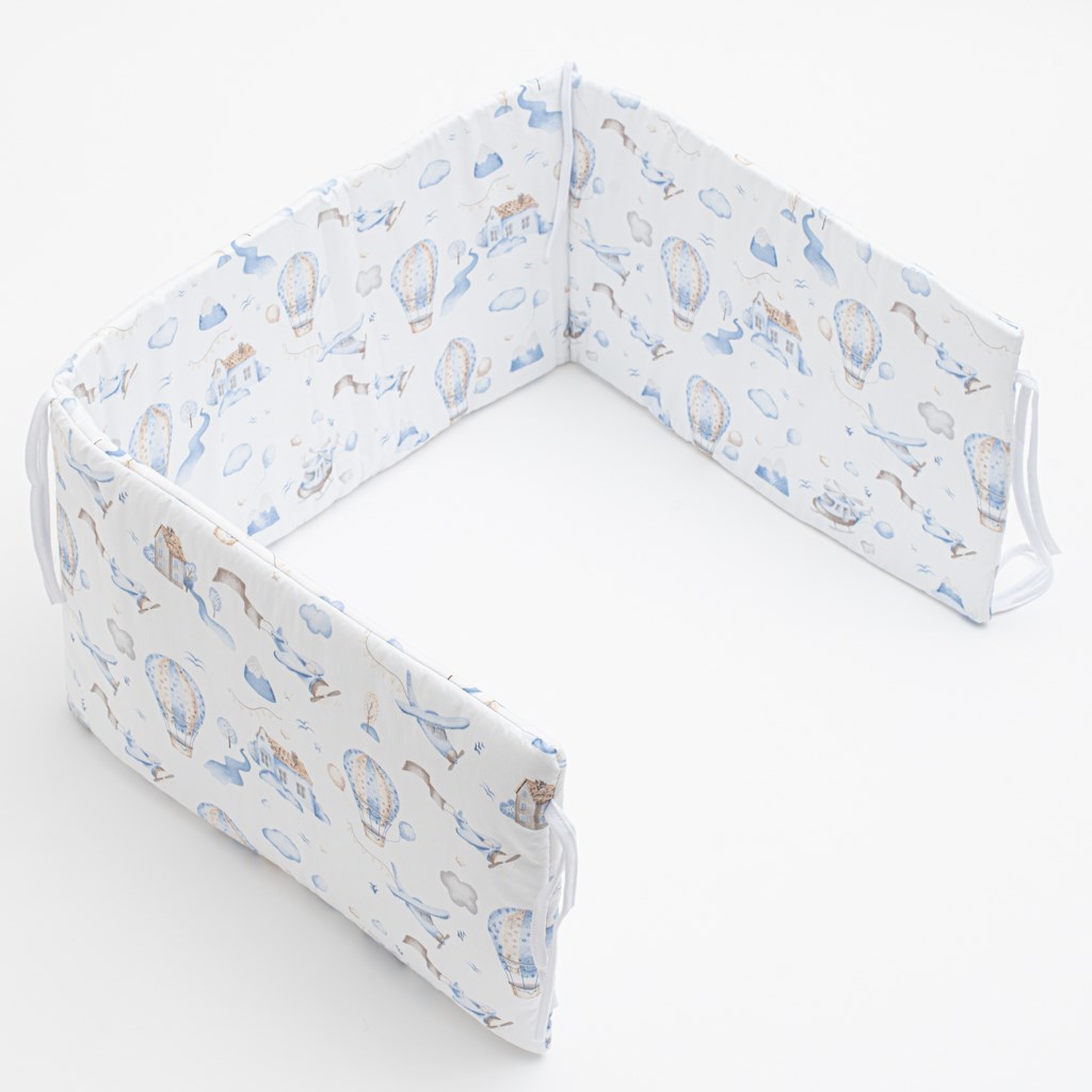 Divatos és praktikus rácsvédő kiságyba New Baby Romance. Puha, kényelmes anyagból készült. Anyaga: belső oldal:100% pamut. Töltet: 100% poliészter. Az ágyhoz szallagokkal rőgzíthető. Mérete: kb. 150 cm.