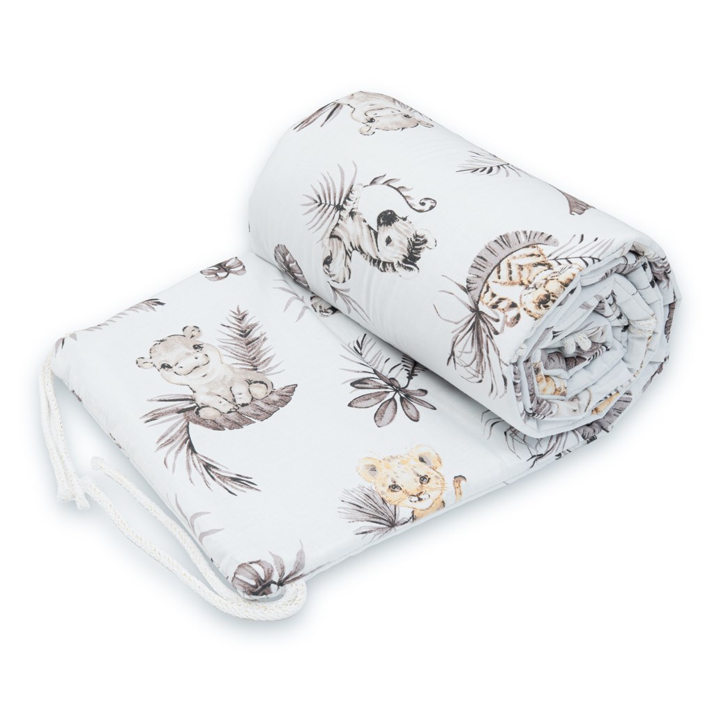 Divatos és praktikus rácsvédő kiságyba New Baby. Puha, kényelmes anyagból készült. Anyaga: belső oldal:100% pamut. Töltet: 100% poliészter. Az ágyhoz szallagokkal rőgzíthető. Mérete: kb. 180x30 cm.