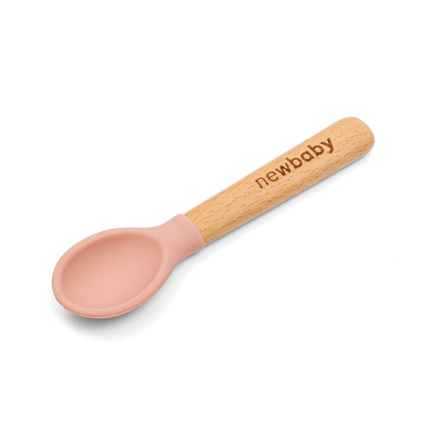 Szilikon kanál fa nyéllel New Baby rózsaszín