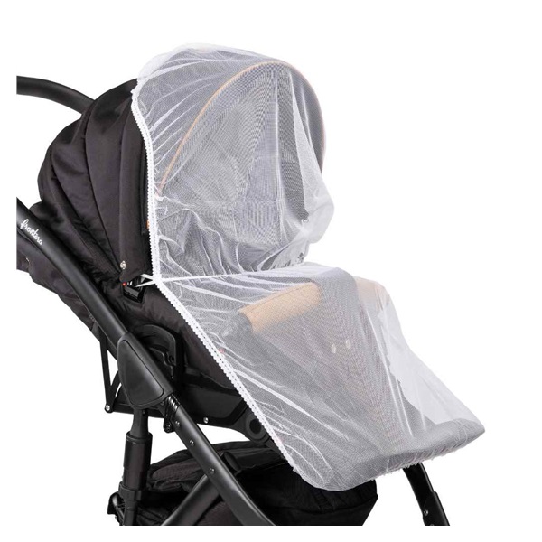 Univerzális szúnyogháló babakocsira. Mérete: kb. 45x85 cm. Anyaga:100% poliészter.